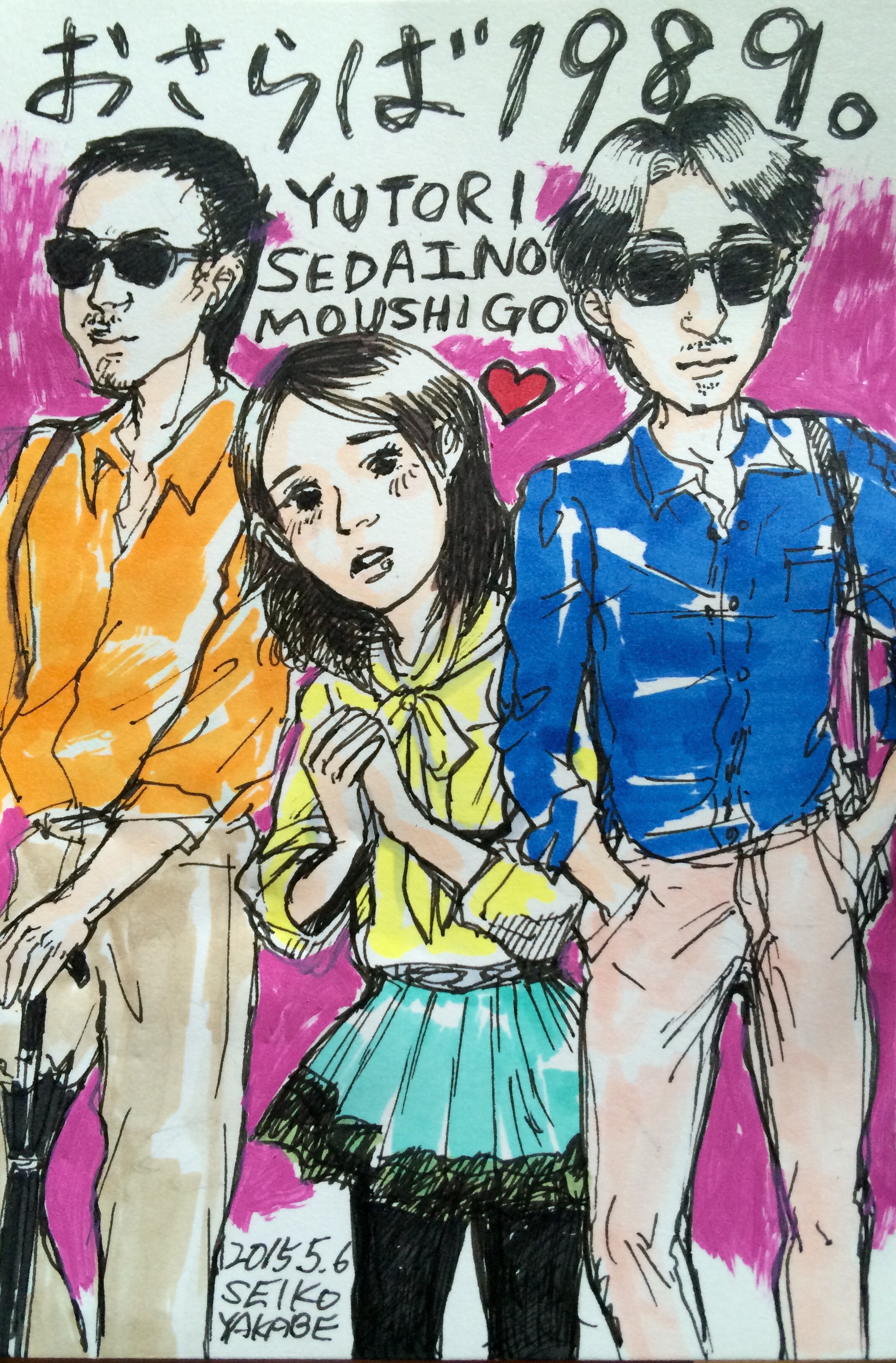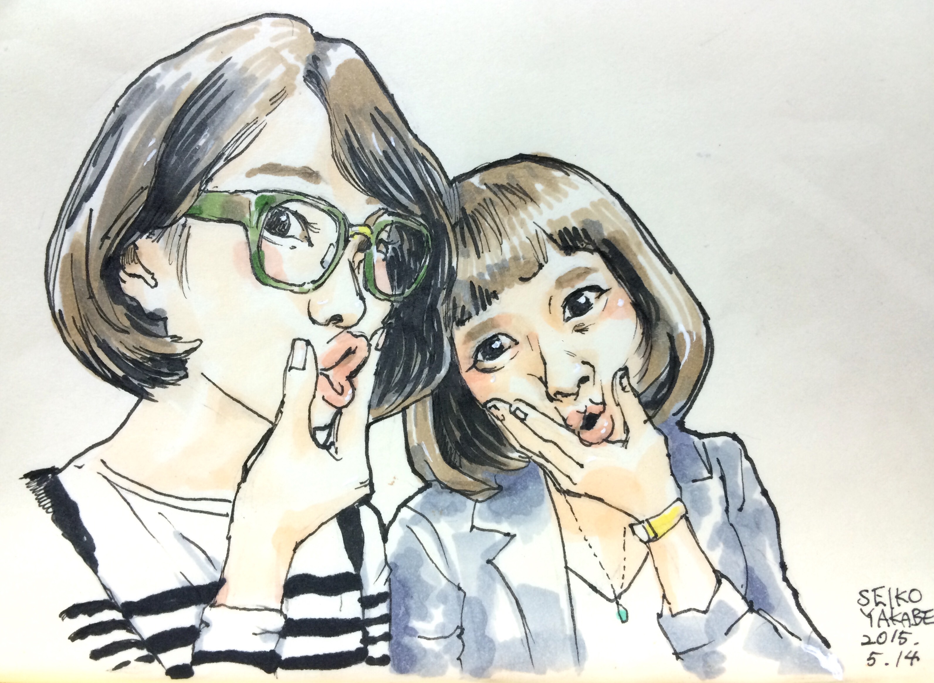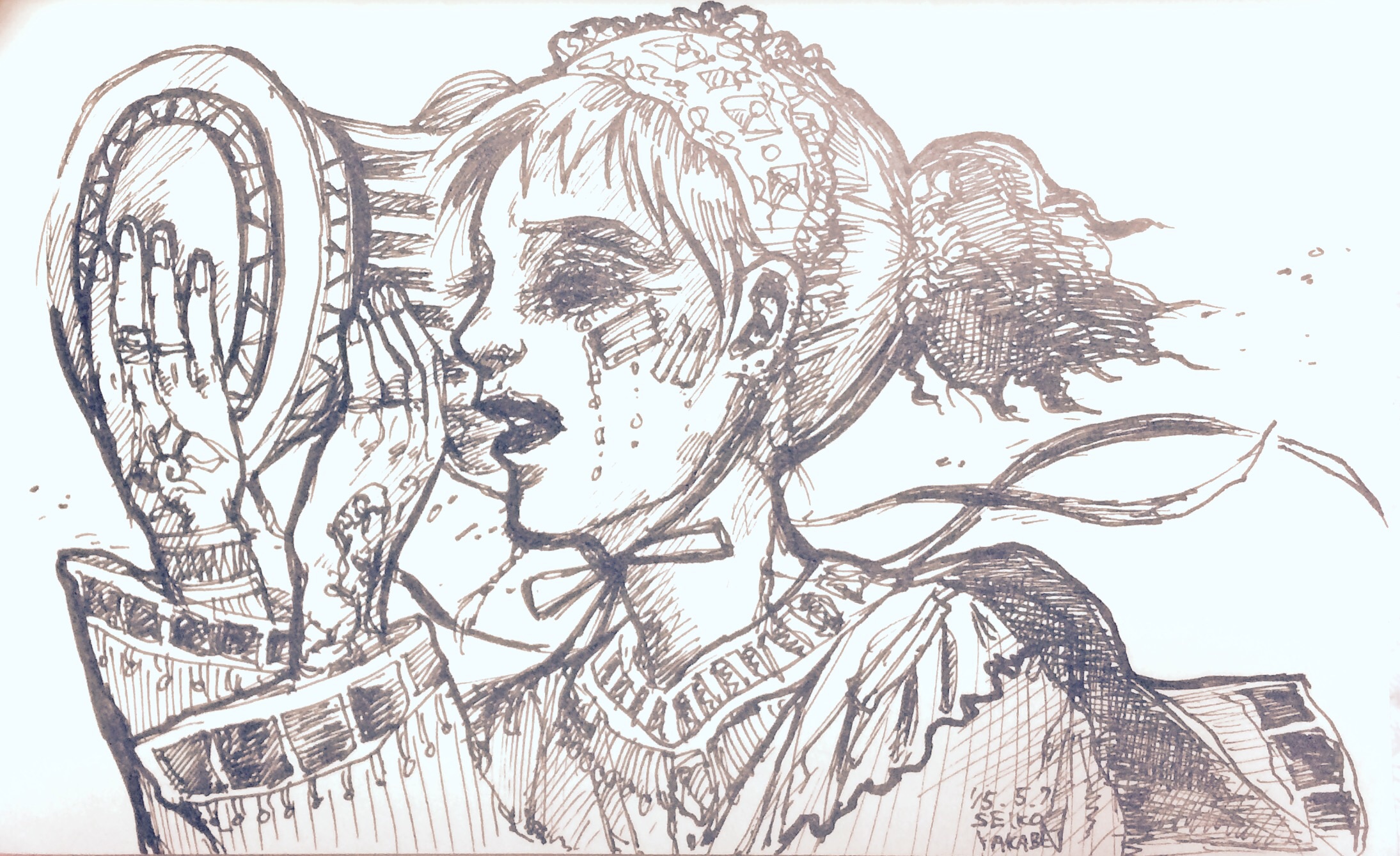 先月には色つけまでできなかったので色も付けてきました。 2015.5.24 「銀河鉄道の夜」 だんだん充実してきて描くのが楽しくなってきました! 次はネガティブなネタのリクエストが・・・w さて何描こうかな! 私は次回のボンドバ開放日にはおりません。 その日6月28日はAMPアトリエにてヌードデッサン会になっております。 メンズモデルですwww 参加者も募集しております!ぜひ。 ボンドバさんでしてもらったハーブアロマセラピー。すっごくよかった。 私のこのあふれ出るリア充ソングを余すことなく人に聴かせてやりなさいってさ!(こんな説明ではないがw) この喜び幸せ希望を疑ったり、いやそうではないとネガティヴに考える、とらえるところが私にはある。それがずばり私のネガティヴな印象なんだって。言い当てられたw というわけで幸せなら幸せと、エネルギーあふれる作品を作っていこうと思います。 もっとあるがままに私らしく私のままで。 ボンドバのみなさん、ハーブアロマセラピーの方ありがとうございました! 以下 こちらからは普通に日記。 27日には仕事の後速攻でゲスの極み乙女。のライブにZEPP FUKUOKAへ行ってきました。 さいっこうによかったです!課長の首振りが特によかったw いこかちゃんまじかわいい。ちゃんMARIの体の張り具合もよかった。 絵音君は声高かったーーーうますぎ。 みんな本当に演奏上手だった。 MCも面白いしすべてがイケてた。すごくいい刺激になった。 同い年くらいであそこまでのプロ意識。プロ。レベル高い。なのにまだまだ伸びると思わせるポテンシャルの高さ・・・ドキドキしっぱなし。すごいわゲスの極み乙女。!! これは作風変わるな! 自分の創作も楽しみになった。ふっふっふ。面白いものつくるぞ。 さて夏の二人展に向けて制作するんでそろそろアドュ。 七月にindigo la End 八月にSuperflyと長渕剛さんのライヴに行くんで それまで大好きな音楽たち聴いて歌ってガンガン制作するぞ! アラサーーー たのしい夏が近づいている! 一日一枚落書き 「本当のゲスって何かわかる?」 私は知ってしまった! 私は正真正銘の ゲス だってことを! ま、いっか。 PR 最近の悩みはFacebookのタイムラインをスクロールするだけで30分以上かかっていること 情報多いんだか少ないんだか。 あんまり読んでないと、リアルの会話で あれ?Facebookにも書いてたけど? って言われるやつよね。 私も あれ?読んでない?記事書いてたよ て言ったりするけど、自分自身でも皆さんの流し読みしたりすること多いような… 友達増えまくった最近は特に… 前にいいね全然つけてこんなこいつって思ってた人おって、 なんでー?って聞いてみたら Facebookやりにくくない?って言ってた人いた 多分その方総勢1000人くらい友達がいたんだろうな… 私は450人程度の友達数でこのうんざりする状態。なら、その方の煩わしさ、今ならわかるかも。大変そう…。 友達や いいねをしたFacebookページの数が増えれば増えるほどスクロールする時間がまた増えるんだろうかと思うとちょっと…… じーんわり Facebook離れも考えちゃうね(笑) かと言って友達をないがしろにするつもりはないんだけど。 何事もさくさくせんと無駄が多いということなんだな。 っていうのをダラダラ深夜に考える私はくだらない(笑)
